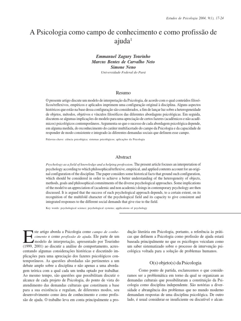 ste artigo aborda a Psicologia como campo de conhecimento e como profisso de ajuda. Ele parte de um