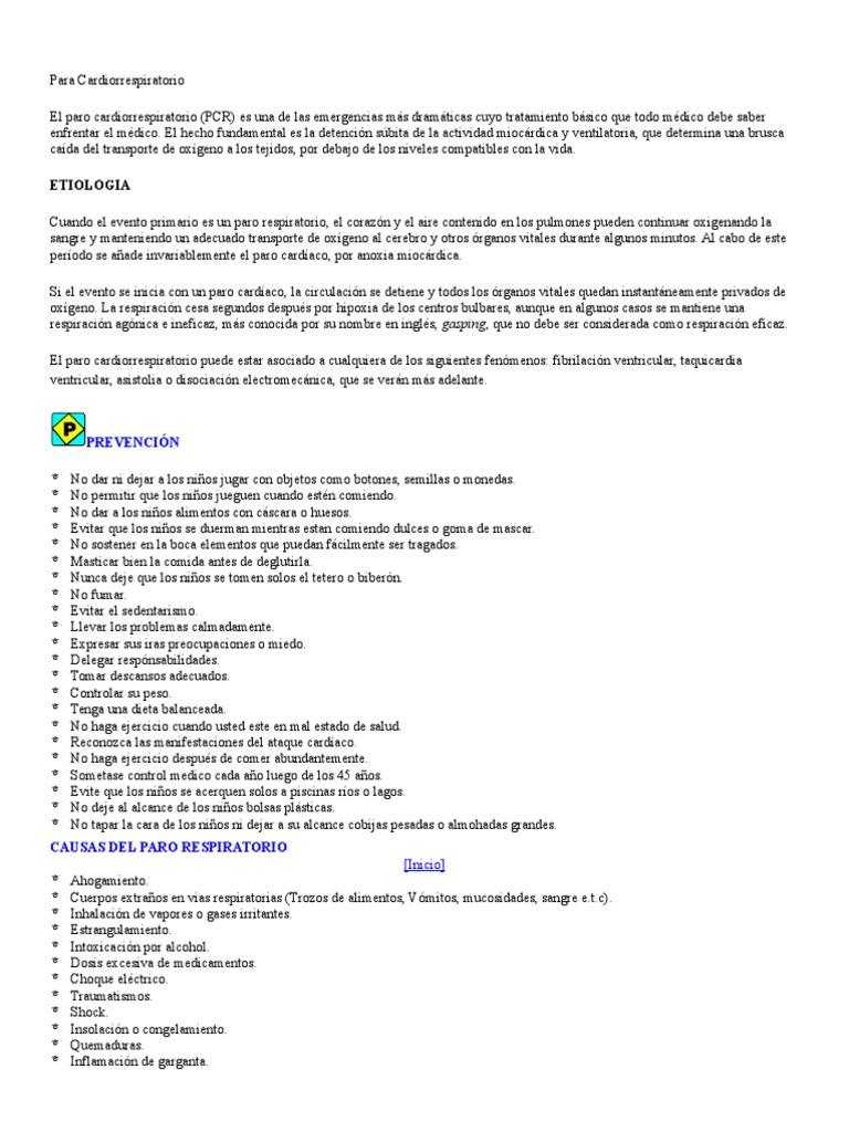 CAUSAS DEL PARO CARDIO RESPIRATORIO