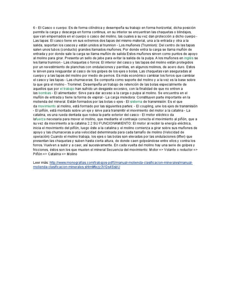 molienda del mineral. Estn formados por las bolas o ejes - El sistema de transmisin: Es el que