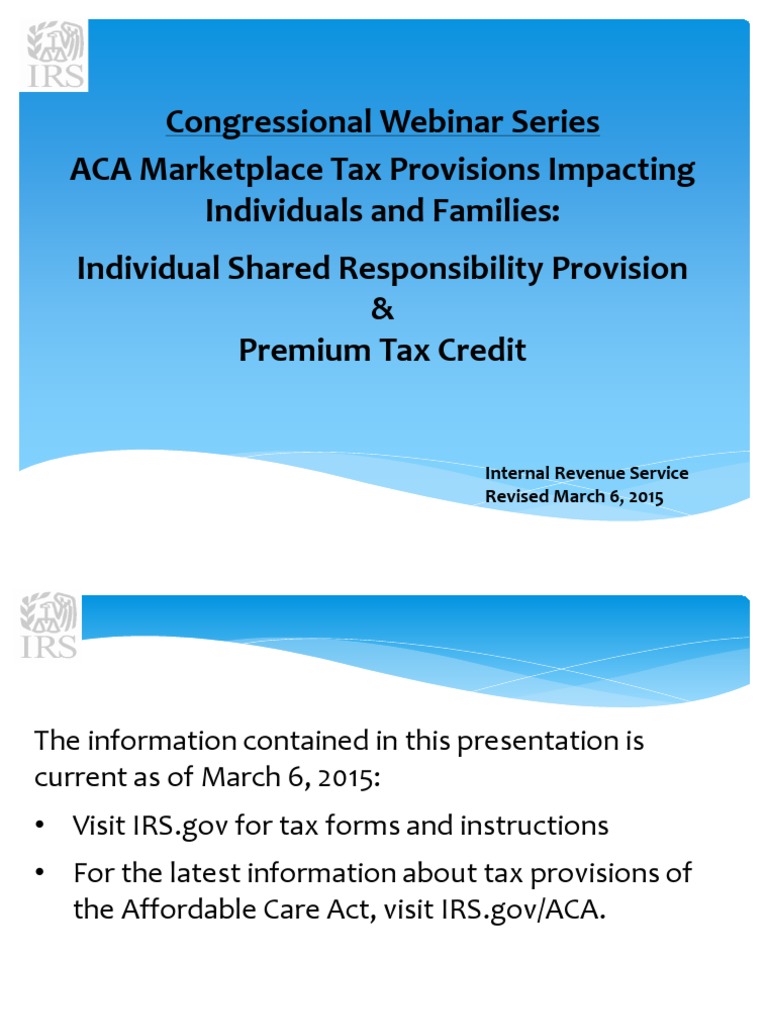Congressional Webinar Series ACA Marketplace Tax Provisions Impacting Individuals and Families: Individual Shared Responsibility Provision & Premium Tax Credit