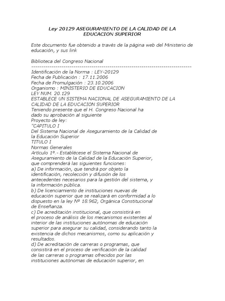 Ley 20129 ASEGURAMIENTO DE LA CALIDAD DE LA