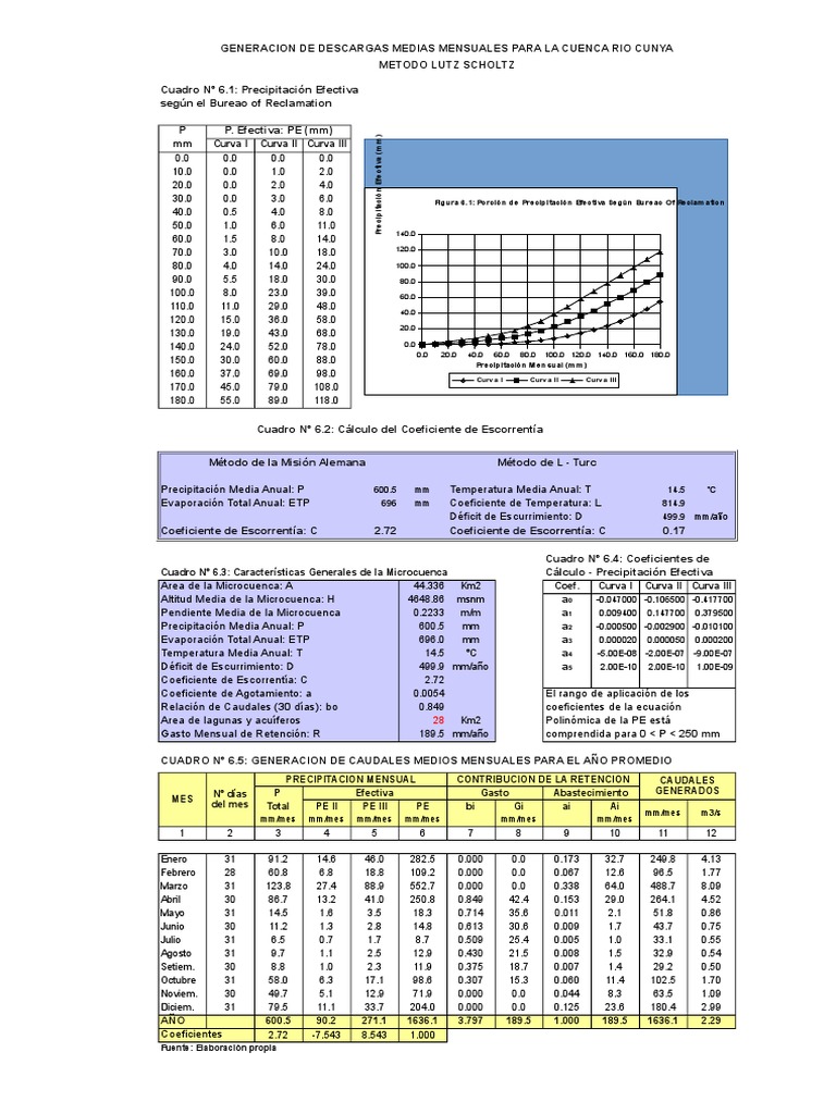 GENERACION DE DESCARGAS MEDIAS MENSUALES PARA LA CUENCA RIO CUNYA