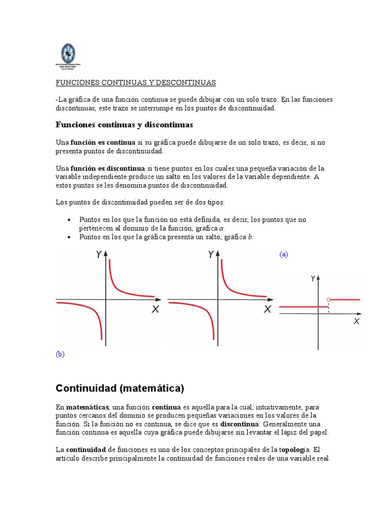 funcin. Si la funcin no es continua, se dice que es discontinua. Generalmente una