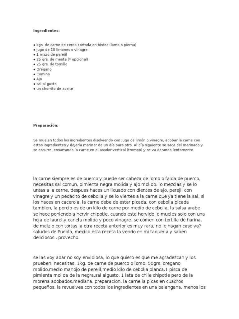 Se muelen todos los ingredientes disolviendo con jugo de limn o vinagre, adobar la carne con