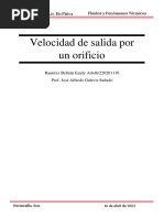 la velocidad de salida del liquido por un pequeo orificio coincide con la