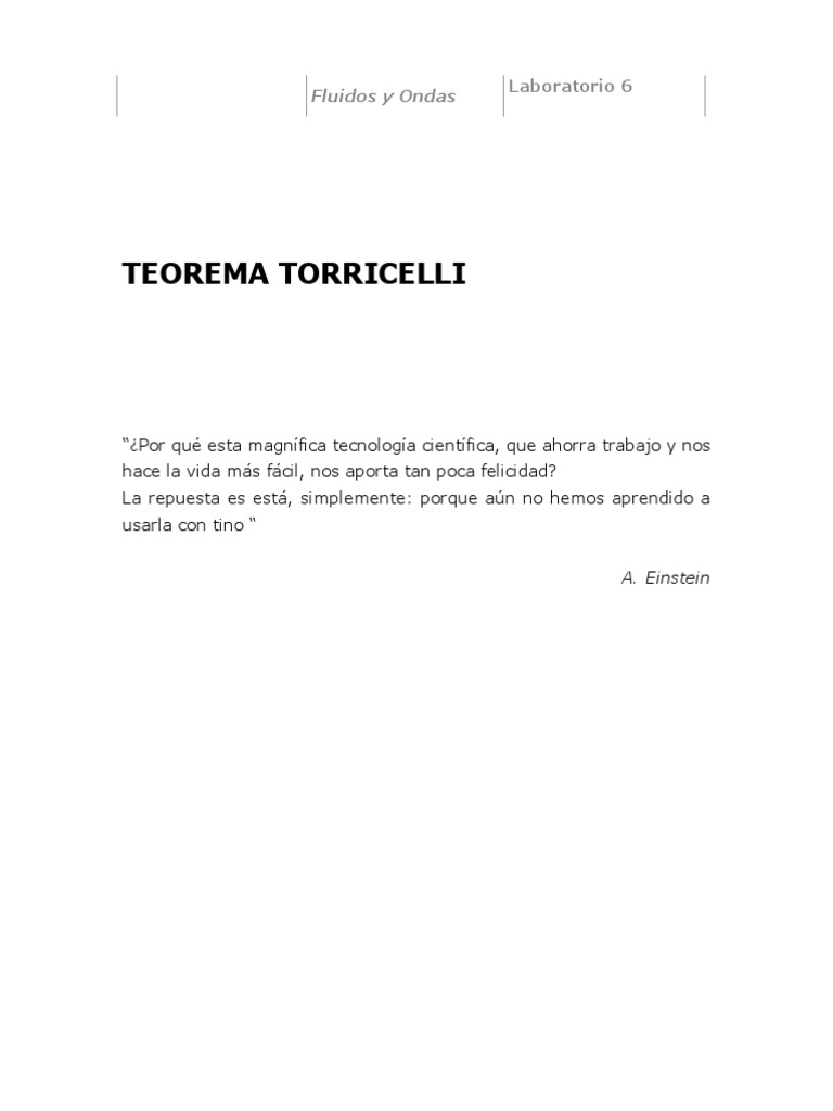 relacin del teorema de Torricelli, consignar los datos en la tabla