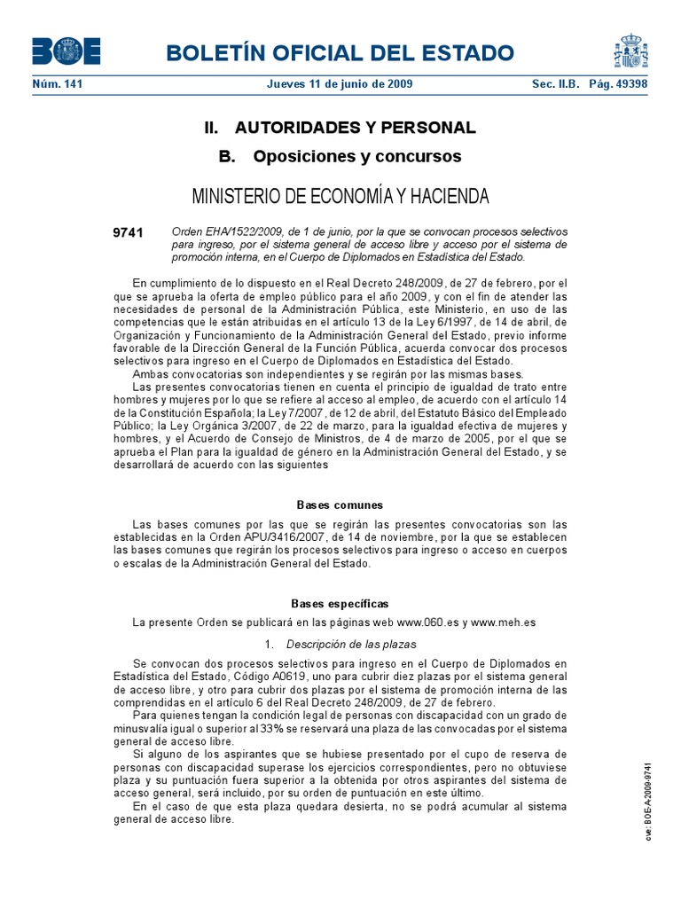 Orden EHA/1522/2009, de 1 de junio, por la que se convocan procesos selectivos