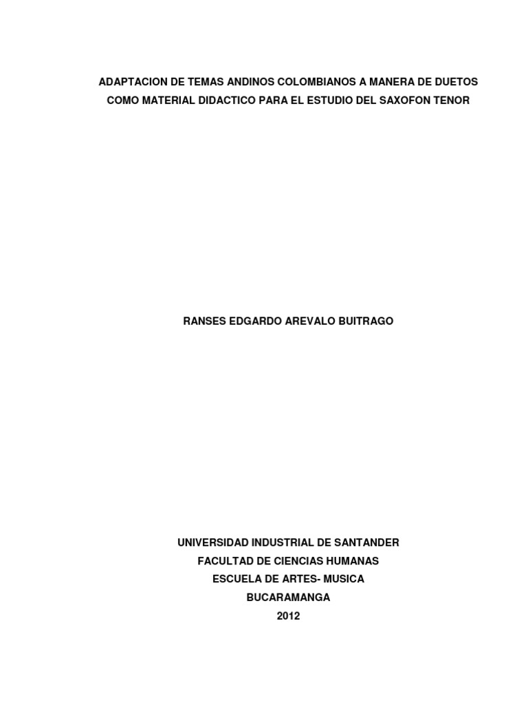 ADAPTACION DE TEMAS ANDINOS COLOMBIANOS A MANERA DE DUETOS