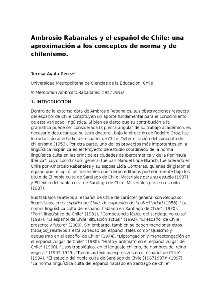 RABANALES, AMBROSIO. 1953. Introduccin al estudio del espaol de Chile.