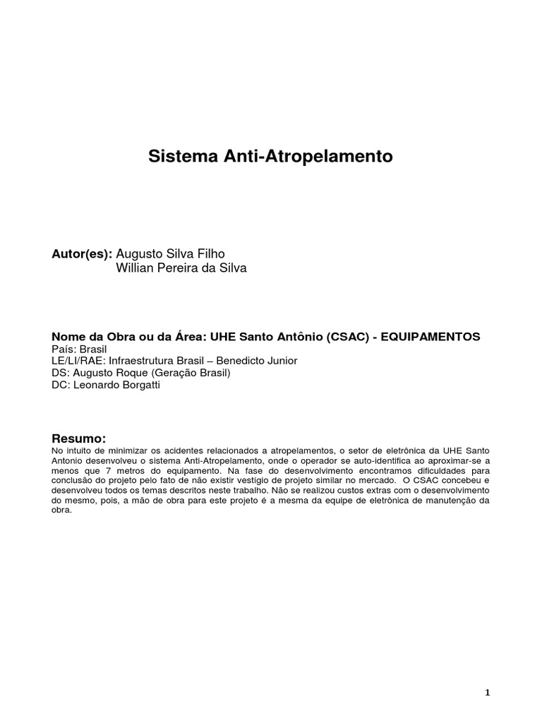 Antonio desenvolveu o sistema Anti-Atropelamento, onde o operador se auto-identifica ao aproximar-se a