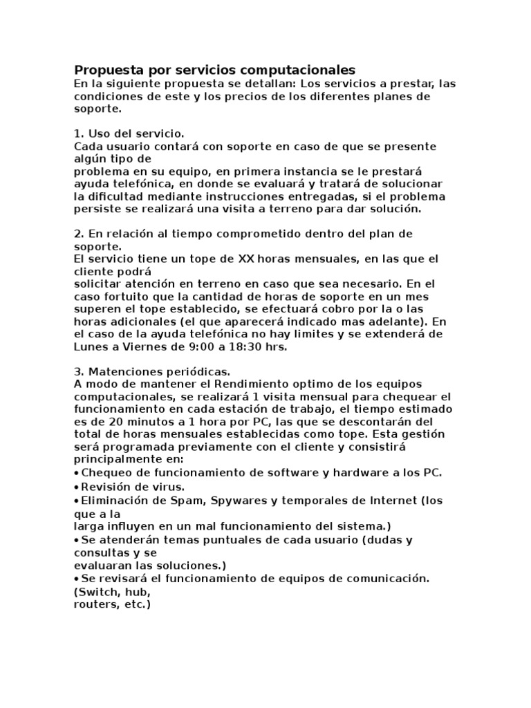 En la siguiente propuesta se detallan: Los servicios a prestar, las