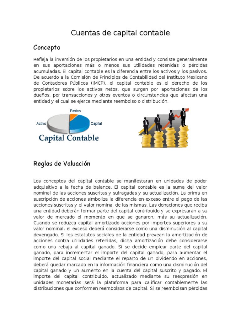 acumuladas. El capital contable es la diferencia entre los activos y los pasivos.