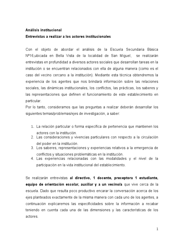 Se realizarn entrevistas al directivo, 1 docente, preceptora 1 estudiante,