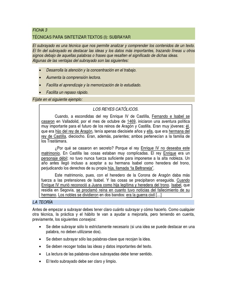 No se trata de subrayar todo el texto, sino solo palabras clave o frases breves.