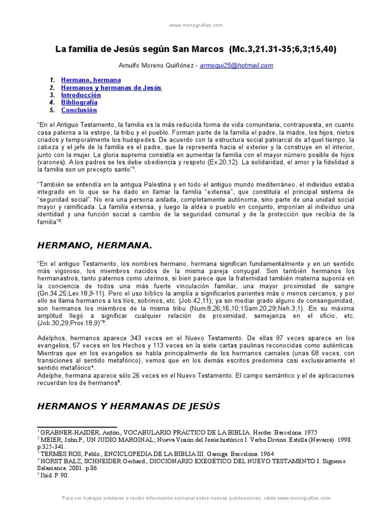 Yo quiero centrar mi investigacin sobre la familia de Jess en el evangelio segn San Marcos, pero