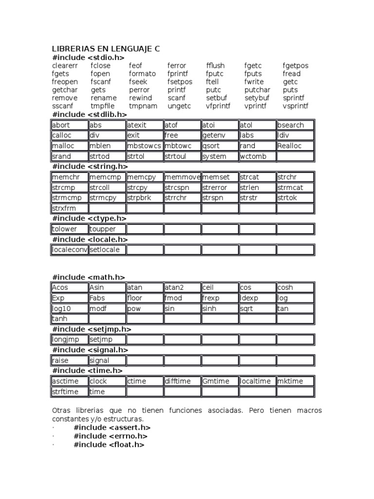 assert.h Contiene una macro para el diagnstico dentro de los programas.