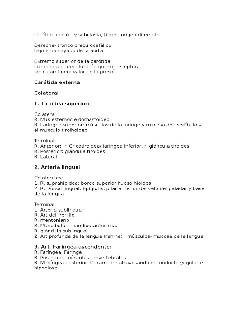 1. Ramas musculares: M. Esternocleidomastoideo, R. Descendentes o