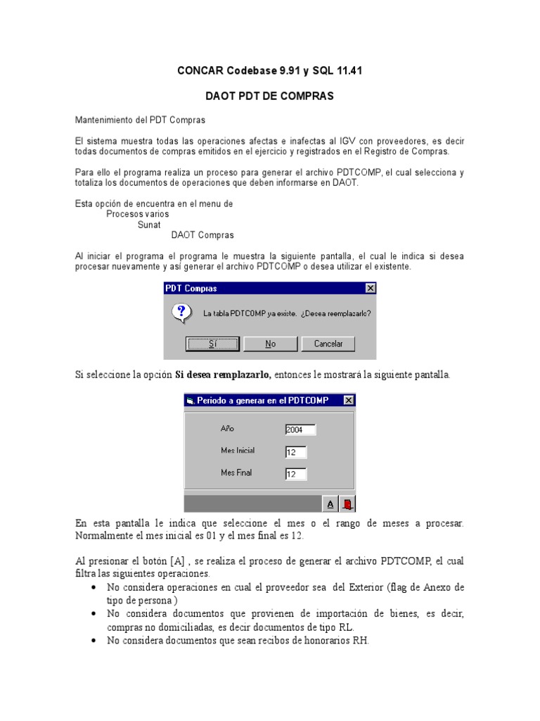 Para ello el programa realiza un proceso para generar el archivo PDTCOMP, el cual selecciona y
