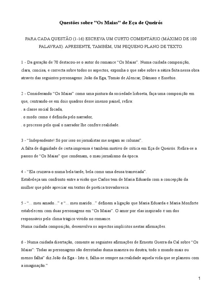 1. O problema da Educação em " Os Maias " adquire uma importância fundamental.