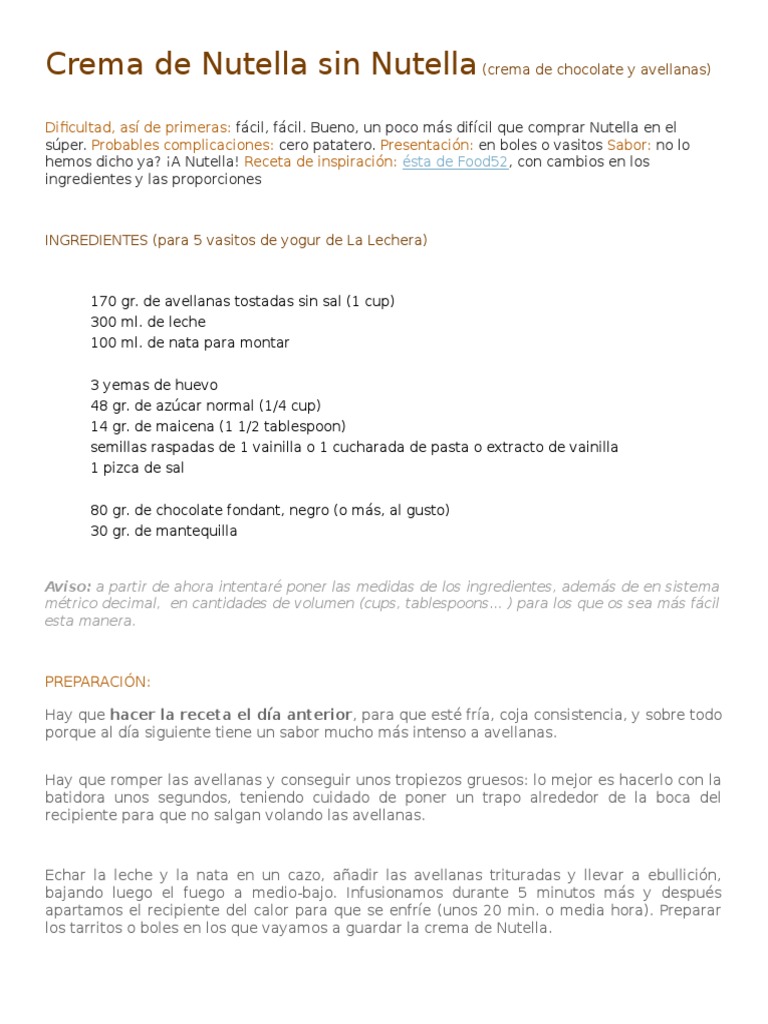 Crema de Nutella sin Nutella (crema de chocolate y avellanas)
