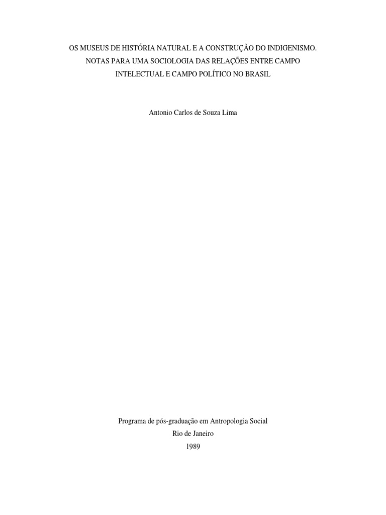 mestrado (LIMA, 1985), apresentada ao Programa de ps-graduao em Antropologia Social, do Museu