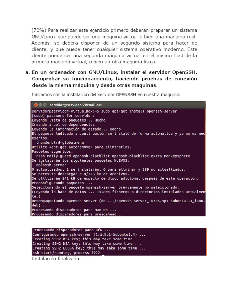 a. En un ordenador con GNU/Linux, instalar el servidor OpenSSH.