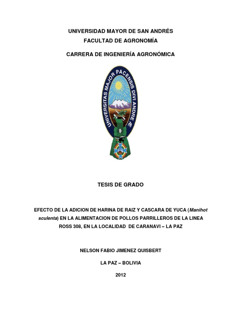 A la Universidad Mayor de San Andrs, Facultad de Agronoma, as tambin a la