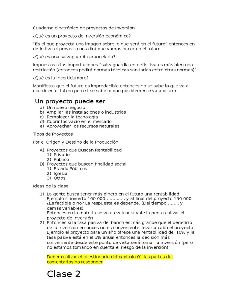 Ejemplo el proyecto para un ao ofrece una rentabilidad del 10% y la