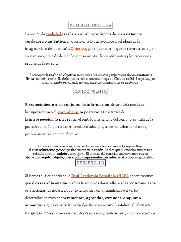 El concepto de realidad objetiva se vincula a los objetos y sujetos que tienen existencia
