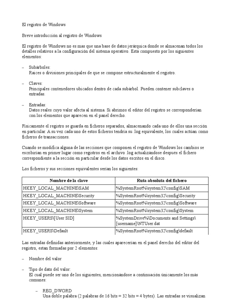 Breve Introduccion Al Registro de Windows