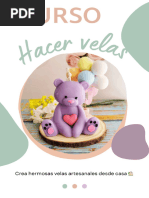 INTRODUCCIN -----------------------------------------------------------------------------------------------------------------UN POCO DE HISTORIA ------------------------------------------------------------------------------------------------------SIGNIFICADO DEL COLOR DE LAS VELAS ----------------------------------------------------------------------------LOS AROMAS Y LAS VELAS ------------------------------------------------------------------------------------------------LAS FORMAS DE LAS VELAS ----------------------------------------------------------------------------------------------LAS VELAS Y LOS SIGNOS DEL ZODIACO ----------------------------------------------------------------------------LAS VELAS Y LOS SANTOS ------------------------------------------------------------------------------------------------LAS VELAS Y LAS FECHAS MAGICAS ----------------------------------------------------------------------------------EQUIPO Y MATERIALES ESENCIALES ----------------------------------------------------------------------------------Utensilios ---------------------------------------------------------------------------------------------------------------------------Materiales para hacer Velas --------------------------------------------------------------------------------------------------Aditivos -----------------------------------------------------------------------------------------------------------------------------Pabilos ------------------------------------------------------------------------------------------------------------------------------Accesorios -------------------------------------------------------------------------------------------------------------------------Consejos y precauciones para facilitar la tarea --------------------------------------------------------------------------Tipos de cera ----------------------------------------------------------------------------------------------------------------------El molde de goma ----------------------------------------------------------------------------------------------------------------Preparacin de los pabilos ----------------------------------------------------------------------------------------------------TCNICAS PARA HACER VELAS -----------------------------------------------------------------------------------------Fabricar velas con trocitos -----------------------------------------------------------------------------------------------------Fabricar velas flotantes ---------------------------------------------------------------------------------------------------------Fabricar velas moldeadas -----------------------------------------------------------------------------------------------------Fabricar velas votivas -----------------------------------------------------------------------------------------------------------Fabricar velas de arena --------------------------------------------------------------------------------------------------------Velas de quita y pon -------------------------------------------------------------------------------------------------------------Velas enrolladas ------------------------------------------------------------------------------------------------------------------Procedimiento bsico -----------------------------------------------------------------------------------------------------------ELABORANDO VELAS BSICAS ------------------------------------------------------------------------------------------Vela inicial con color y aroma -------------------------------------------------------------------------------------------------Velas de cera estampada ------------------------------------------------------------------------------------------------------Vela de cera virgen de panal con corazn --------------------------------------------------------------------------------Vela de cera virgen de panal en espiral ------------------------------------------------------------------------------------Vela rstica ------------------------------------------------------------------------------------------------------------------------Velas combinadas ---------------------------------------------------------------------------------------------------------------Velas con varios colores arco iris --------------------------------------------------------------------------------------------Velas con varios colores, geomtrica ---------------------------------------------------------------------------------------Vela corazn multicolor ---------------------------------------------------------------------------------------------------------Vela multicolor --------------------------------------------------------------------------------------------------------------------Cirio de vida -----------------------------------------------------------------------------------------------------------------------Flor del secreto -------------------------------------------------------------------------------------------------------------------Velas positivo y negativo, en dos tonos con parafina en trozos irregulares -----------------------------------Positivo -----------------------------------------------------------------------------------------------------------------------------Negativo ----------------------------------------------------------------------------------------------------------------------------Vela con chorreado irregular ---------------------------------------------------------------------------------------------------Vela con colores esfumados ---------------------------------------------------------------------------------------------------Velas torneadas -------------------------------------------------------------------------------------------------------------------Velas de rodillo --------------------------------------------------------------------------------------------------------------------Pirmides de cera ----------------------------------------------------------------------------