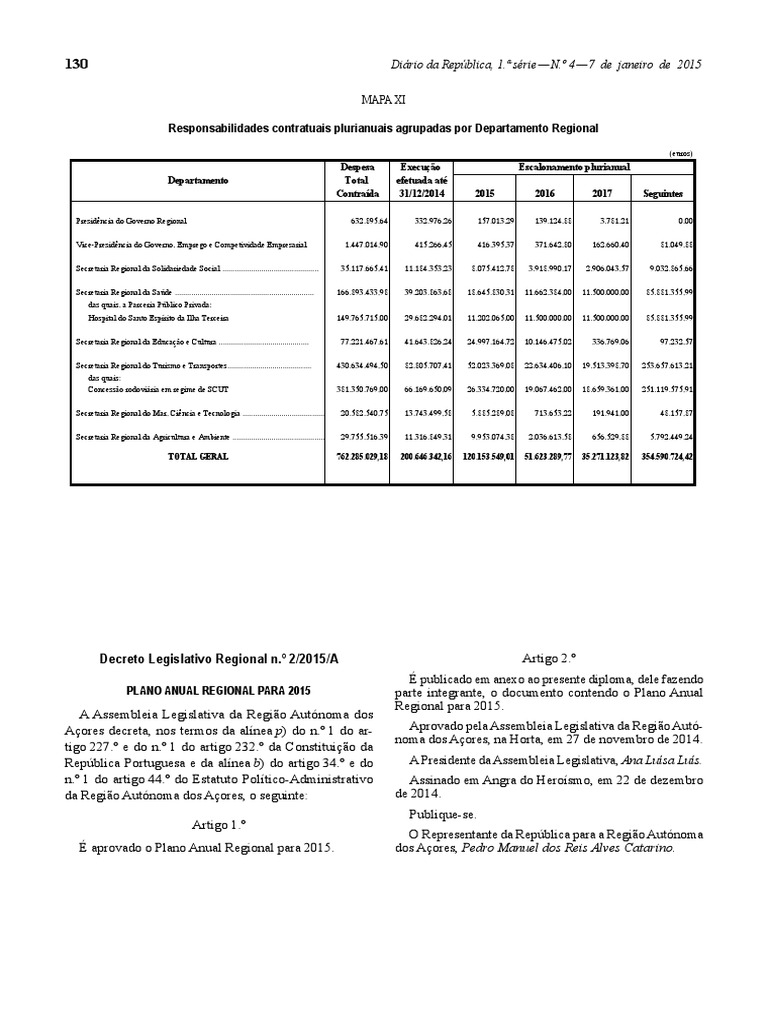 . . . .727 350. .469 913.506 13. .975 18.821 36. . . .616 12. . . . . . .000 25. . .297. 112. .000 675. . . . .541 1.284.300 65.8 5. . . . . . . . .202. 8. . . . . .084. .344.000 180.000 82.289 Frota e Recursos Humanos .427 57. . . . .783 3.240.408.528. .000 7. . . . .282. . . . . . . . . . .132 1.212 1. .157 150. .000 2.5 4 4. . . . . 2. . . . 300. . . .145 1. .000 732. . .243. .000 Serviços Sociais .305. .126 754. .629 2. Planeamento e Finanças. . .933. .743 1.2 6. .531. . .776. . . . . . .000 9. .931 3. .238.430 9.350 6. . . . . .000 36.316.500 33.000 45.590. .028.9 2 2. . . . . .000 7. .937. . .750 2.508. . .650. .1 4.205 Aumento do Valor dos Produtos Agrícolas e Florestais. . .187 Diversificação e Valorização do Espaço Rural . .746 3. . .285. . . . . . . . . . 110. . .000 776.2 5. . .989 2. .000 491. .021 3. .907 300.000 135. . . .717. .283 180.670 2. . . . . Dinamização de Atividades Culturais .000 Emprego e Qualificação Profissional.297 2.325. . .952 182. . . . . .943 3. . . .751 1.831. .176 7. .859.211.103 154.000 4. 799. . .986 76. . . .1 1. . . . . . .5 SMA Diário da República. . . . .4 TOTAL .186.752 715.114 46.655 2. . . .537 1. . . .483. . . .314. . . . . .264. .550 2. . . . .290 16. .º 4 — 7 de janeiro de 2015 Investimento Público 2015 .005.4 1. .966.775 1. . . . . .1 3.192. . . . . .000 1. apoio às instituições de Ensino Privado e Formação . . .801 36.500 394. . . .000 776.068 15. . . 12. Cooperação com as Autarquias Locais .1 6. . . .332 61. . .569 38.949 133.000 Defesa e Valorização do Património Arquitetónico e Cultural 2.958 24. . . .706 412.200 9.891 354.108. .4 6. .302 2. . .795.246.719 2. . .733 6.527. . . . . . Ampliação e Remodelação de Infraestruturas .000 770. Ciência . .609 1.136. . .000 415. .809. . .473. . . . . .618 32.508.952 704. .3 5. .000 9.220 Desenvolvimento do Sistema de Saúde . .020. .415.518. .174.067. 38. . . 17. . . . .623 10. . .5 1. . 2. . . .000 905. . .311 462. .830.028 28. . . .349. .600.000 1. . 5. . .842 43.629 165. .240 11. . . . 18. . .315. .641 12.193 Pescas e Aquicultura .587.389 449. .822 5.117. . .000 79. . . . . . .657.590.505. .389. . . . . .000 32. . . .000 Parcerias Público-Privadas.172. .084. .123.287 Educação. .809.845.000 5. . . .000 175.039 48. Informação de Interesse Público ao Cidadão.720 324. .1 2. . . .280.140.830 10. . . PROMOVER A QUALIFICAÇÃO E A INCLUSÃO SOCIAL 4. . .080 11.445 1. . . . .810 6. .297. . .692. . . .830. .000 2. .885.392.268. . . . . .3 1. .2 3.000 115. . .694.328 2. .488 10.783 5. .150. . . . . .964 72. . .607.000 26. . . . .814. . . . . .2 5 5. . .939 181. .282 13.650 4. . . . . . . .526 1. . . .711 1.476.321. . . . . . .3 3.000 16. . . .000 2. . . . .448. .661 188.429. . .305. . . . Equipamentos Escolares .271.789. .000 2. . . . . .3 6.473. .124 1. . . .336.115 23. .376 24.511 919.230 5. 115.911.830. . . . .485 Infraestruturas Agrícolas e Florestais. . . .150. . . . .140 1. . . .439 11. .154 882.000 2.136.500 6. .828 2.378.922. . 1. . . . . . .956 81.621.065 22. .077. . . .000 1. .673. . . . . . .013 2.6 5. . . . .086 7. .804 10. .966 2.000 28.908 12.624 920. . . . .759 601. .407 300.950 1. . . .531 1.879. . . . .011. . .735 1. . . . . . . 686. . . . .500 590.104 Promoção e Desenvolvimento Turístico .152 57.003. . . .557. . . . . .000 82. .027 438. .000 10.988 82.641. .432. . . . .839 3.691.000 5. . . . . . .850 1. . .153 72.783 5. .047. . . . . . .423 233. . . .6 1.300 65.029. . .076 1. .000 Tecnologias da Informação . . .487. 23. . . .725. . . . .000 639.500 350. .000 41. .166 51. .000 6. . . .215.530.427 1. . . . . . .033. . . 1.161.707 32. . . .000 110. . . .544 185. .582 2.226 3. .241. . .600 9.023 75. . .4 3. . .047.291 1.057.496. . .240 838.702 6. 135. .241. . . . .261. . . . .857 Programa Regional de Desenvolvimento do Sector das Pescas Desenvolvimento do Turismo . . . . .629 2. . . . . .817 39. .943 776.143 176. . .205.428 5. . . .354. .128. . . . . . 1.510 17.812 750.000 2. .700 175 4. . . .000 1. . Estatística . . Florestas e Desenvolvimento Rural .717. .000. . .800 2.725 24. .250 103.260 6. .000 2. .614 1.860. .916 AUMENTAR A COMPETITIVIDADE E A EMPREGABILIDADE DA ECONOMIA REGIONAL .240 Modernização Administrativa . .992. . .889 2.000 175.211 Competitividade.000 436. . . . .394 5.500 316.1 5. . . . . Beneficiação de Infraestruturas . .708 2.202. .467 28.584. . .132 22. . .000 261.049 11. 1. . . .590 6. . . .000 199 5. . .362 11. . . . .831. .000 10.740 378. . . .254. .7 1. . .5 5. . . . . . .014 1. .757 9.877 48.000 4.595. .000 214.000 1. . .218. . .2 2. . .10 6 6.000 677.922. . . .150.000 4. . . 159.693 1. .240 Competitividade Empresarial. .450 56. .000.864 597. Fundo Regional da Ciência .528. . .643. . .072. .963.600 73. .000 470. . . . . . .143 10. .071.837 10. . . .400 18. .408. .236 Produtos da Pesca .642 9. .661.049.027 13. . . 2. . .603 315. .251. .691. . . . . . . .337 Desenvolvimento do ensino profissional. . .779 3.623 824. . .150. . .157 1. . . . .500 224. . . . . . . . .239 1. . .506.300 23. . . .735 675. .750. .693 3. .000 436. . .330 2. . . . .000 19. .835 24. . . .693 48. . .593 24. . . . . . .865.716 255. .753 12.081. . . . . . .868.603.315 465. .662. . . .486 62.075.441 18. . . . . . . Projetos Pedagógicos . . . .053.403 146.713.480 64. . . .347.019 76. . Infraestruturas Portuárias. . .750 1. . . . . .000 11. .055 4. . . . . .969 825. .000 17. . .624.382 Inspeção e Gestão . . . .676. . .263 1. . .416 17. .304 1.000 125. . .873.396.7 5. . .626.061. .855. .292. . . .678. . . .461 7.458 432. .3 2.770 1.941 17. . . .500 14. .901.Desagregação Espacial Euro Objetivo/Programa/Projeto 1 1.035 14. .645. . .201.439. .013. . . . . . . . . .075. . . .050 176.000 5.000 1.482 4. .4 3 3. . . . .205. . . .043 39.860.065 1. . . . . . . . . . .000 12. . .2 1. . .993 5. .589 22. . .337. .964 111. .431. .000 1.419. .000 1. .910.038. .590 349.500 641. .000 Apoio ao Desenvolvimento das Empresas Artesanais.436 470.444 1.726 371.793 5