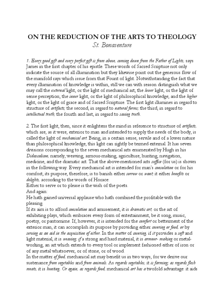 ON THE REDUCTION OF THE ARTS TO THEOLOGY