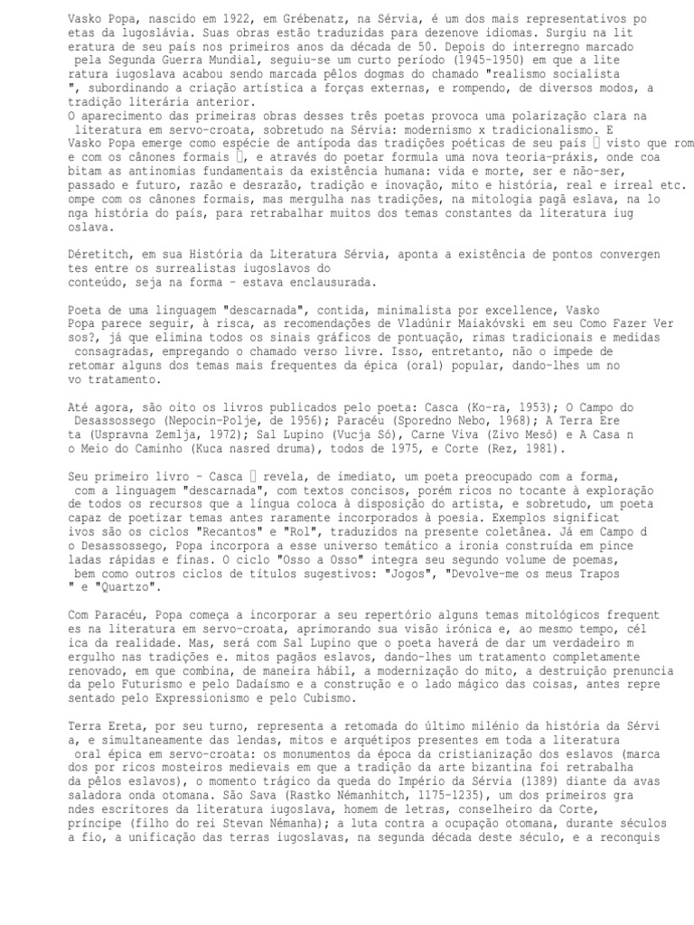 Vasko Popa emerge como espcie de antpoda das tradies poticas de seu pas