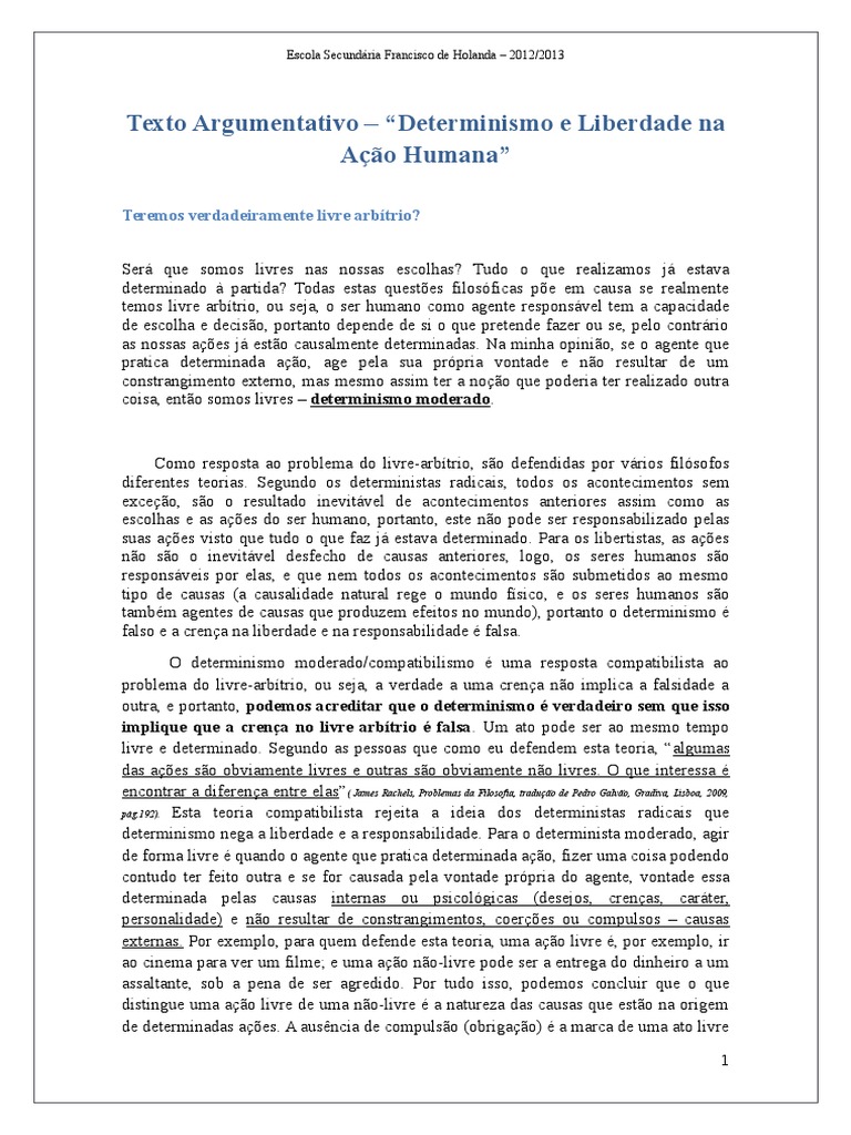 Texto Argumentativo Determinismo e Liberdade na