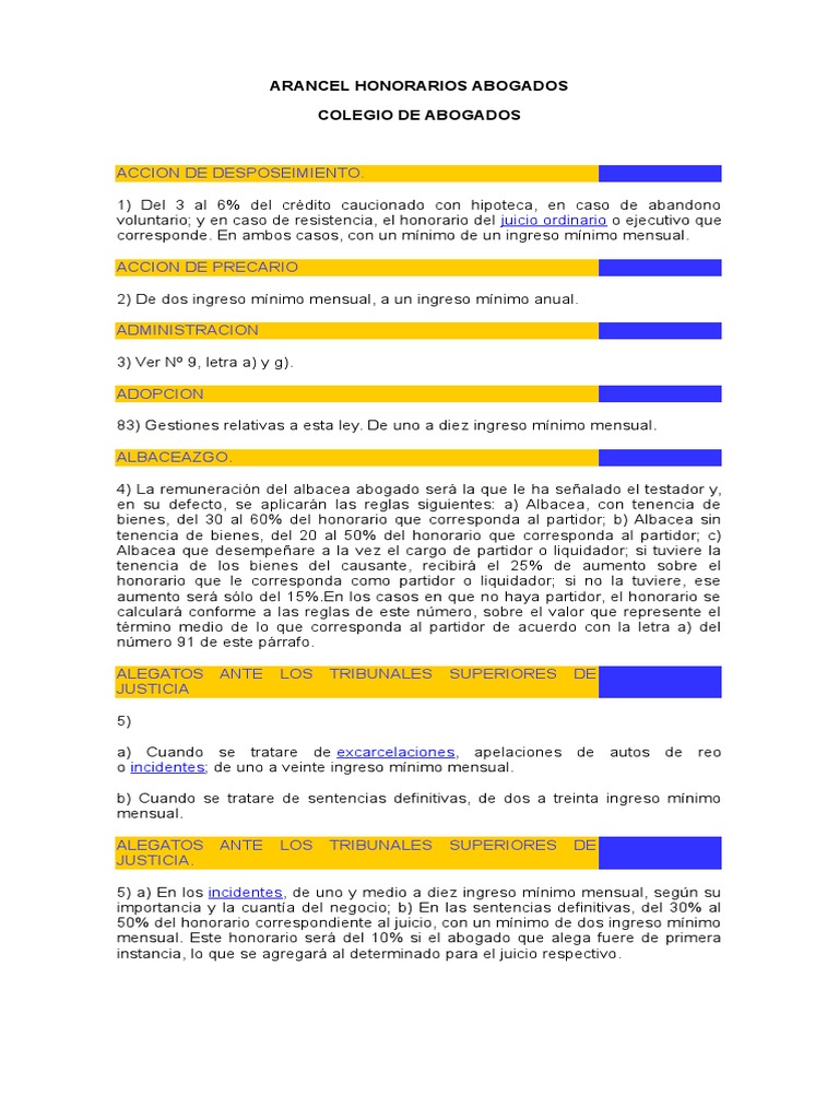 ARANCEL HONORARIOS ABOGADOS