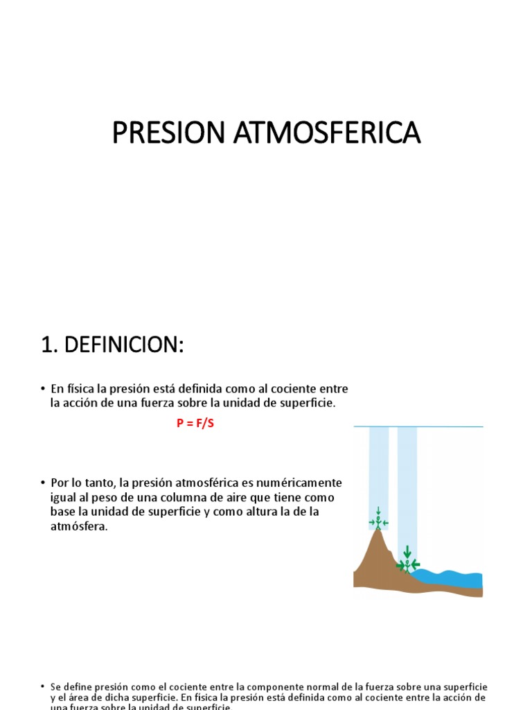 La presin atmosfrica, P, es la presin ejercida por el peso de la atmosfera terrestre. La