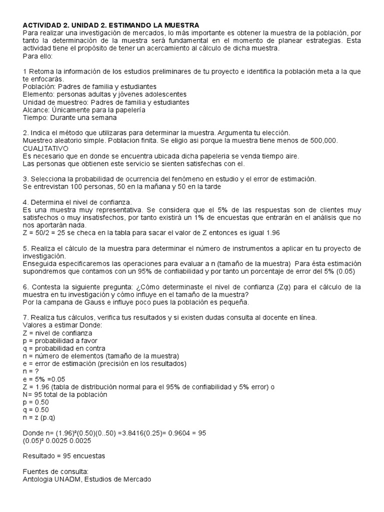 2. Indica el mtodo que utilizaras para determinar la muestra. Argumenta tu eleccin.