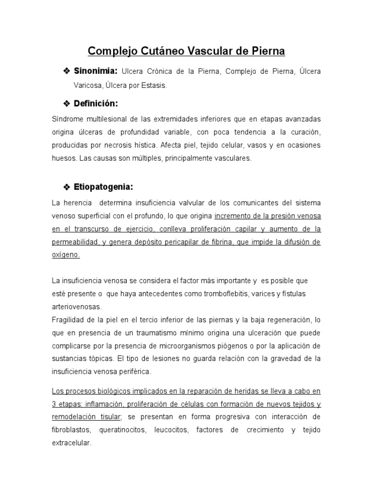 Sinonimia: Ulcera Crnica de la Pierna, Complejo de Pierna, lcera