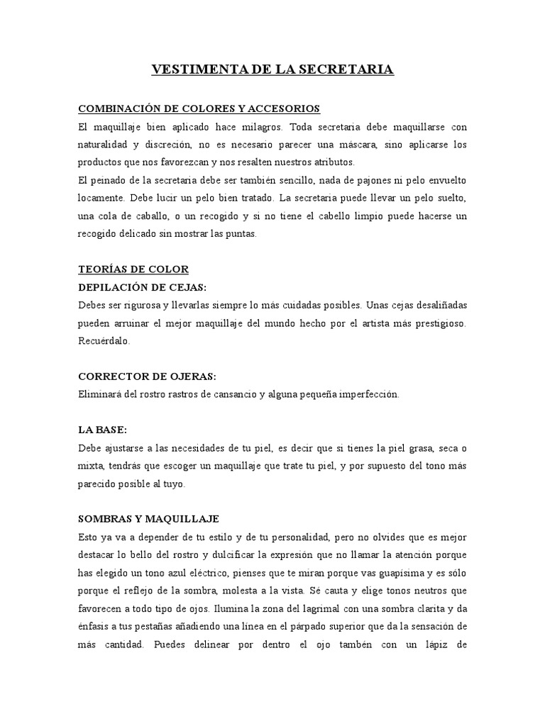 locamente. Debe lucir un pelo bien tratado. La secretaria puede llevar un pelo suelto,