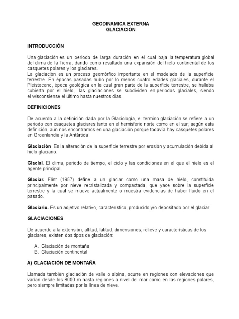 De acuerdo a la definicin dada por la Glaciologa, el trmino glaciacin se refiere a un