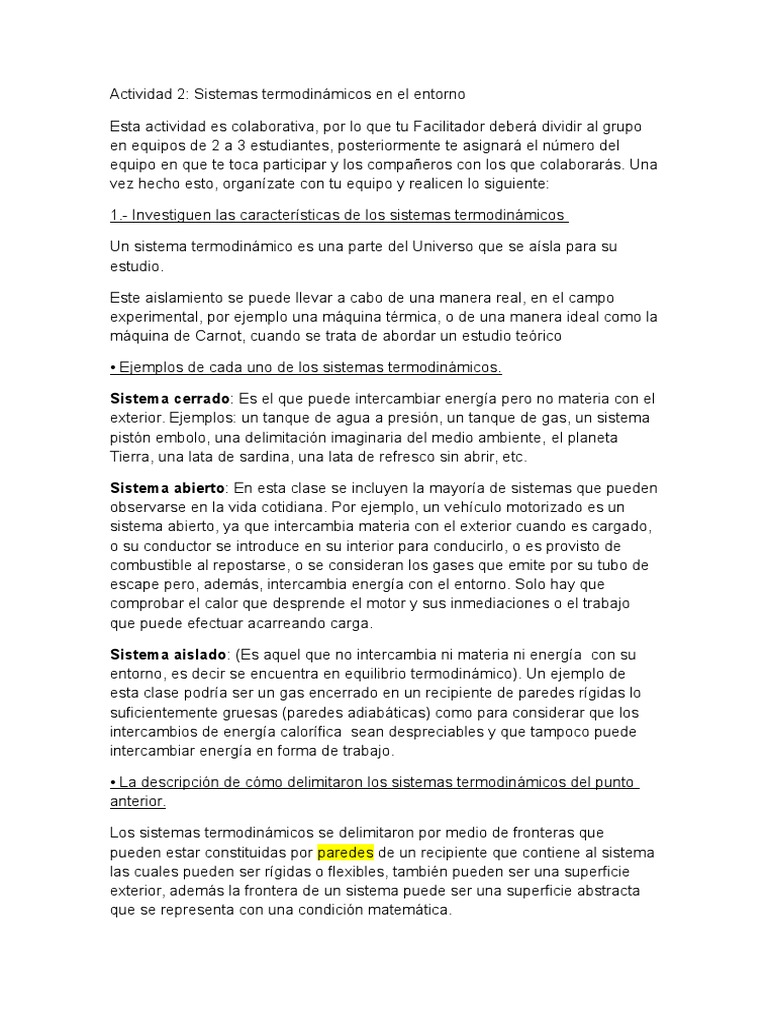 1.- Investiguen las caractersticas de los sistemas termodinmicos