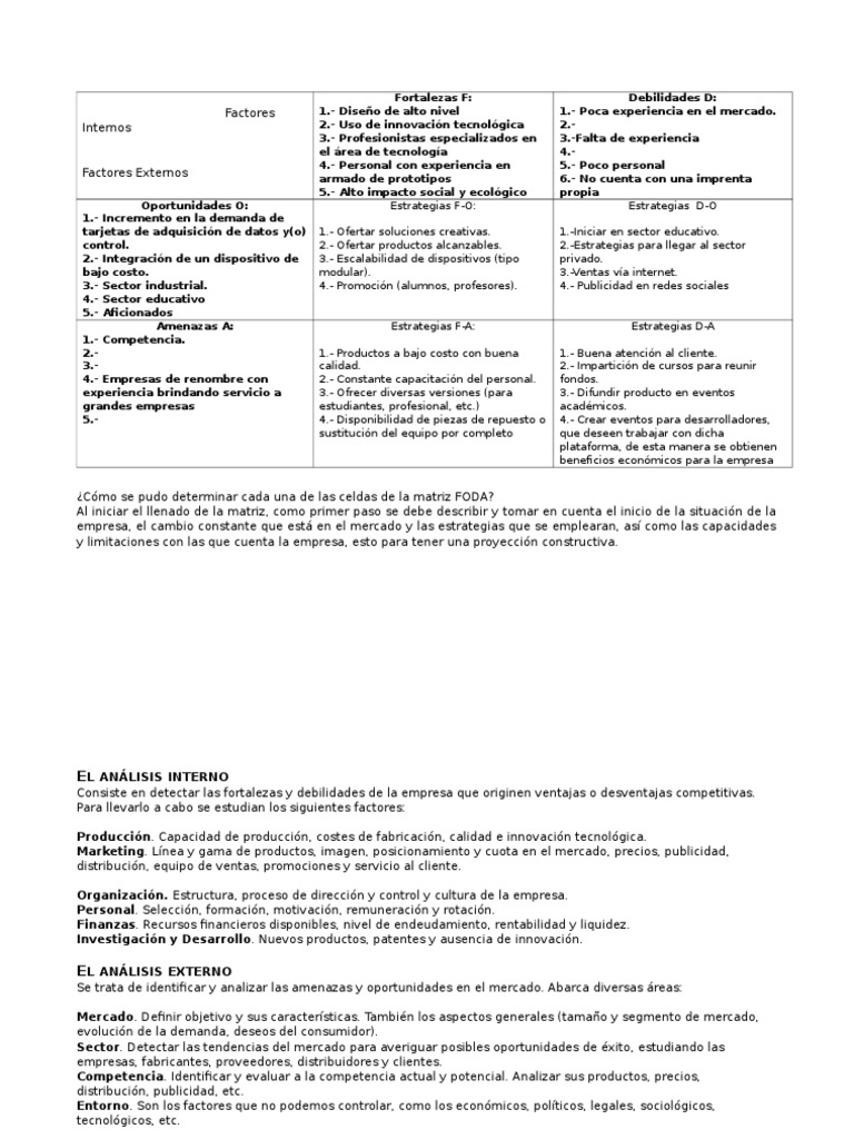 Cmo se pudo determinar cada una de las celdas de la matriz FODA?