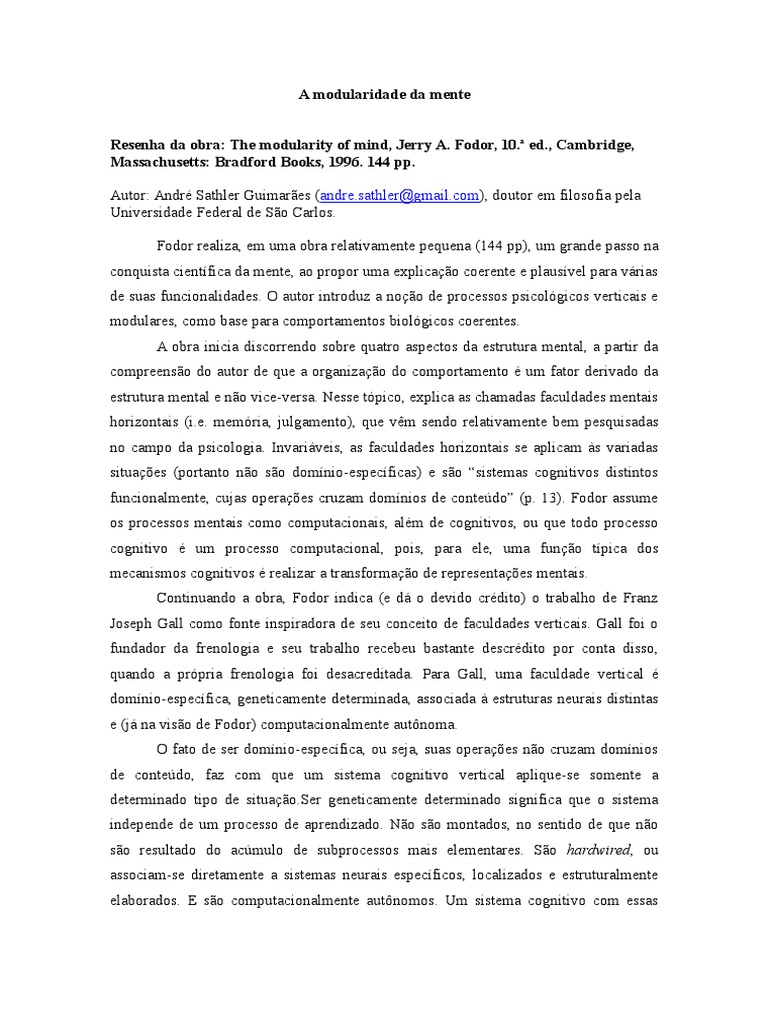 Resenha da obra: The modularity of mind, Jerry A. Fodor, 10. ed., Cambridge,