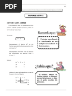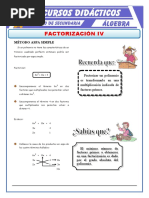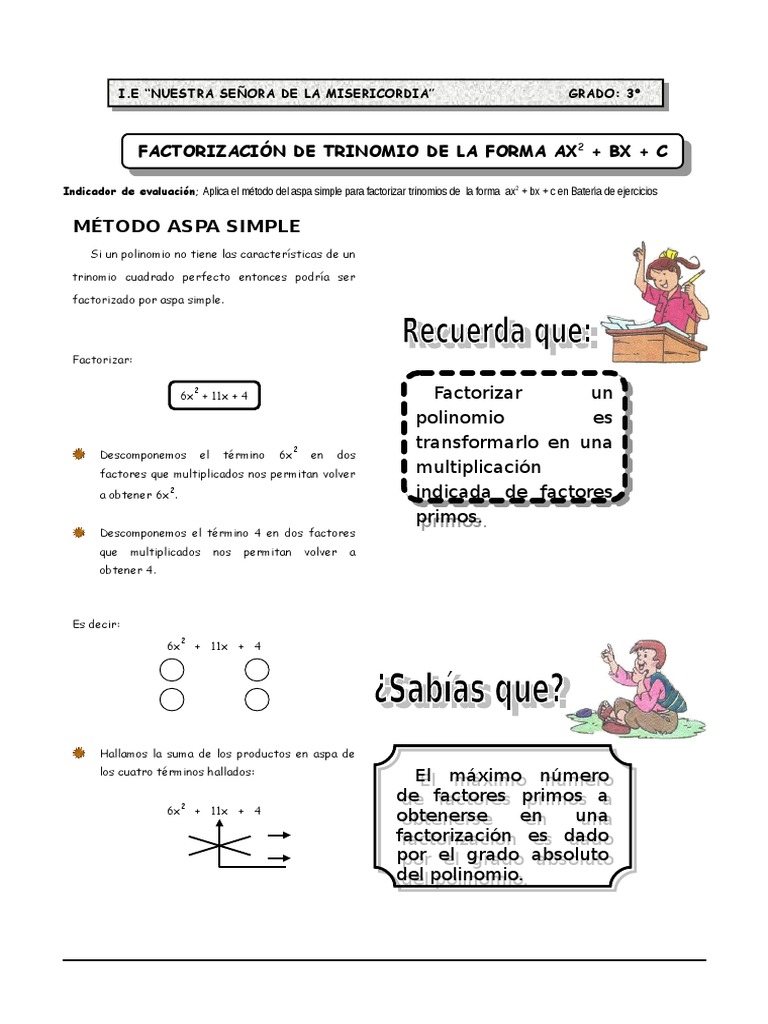 Indicador de evaluacin; Aplica el mtodo del aspa simple para factorizar trinomios de la forma ax2 + bx + c en Batera de ejercicios