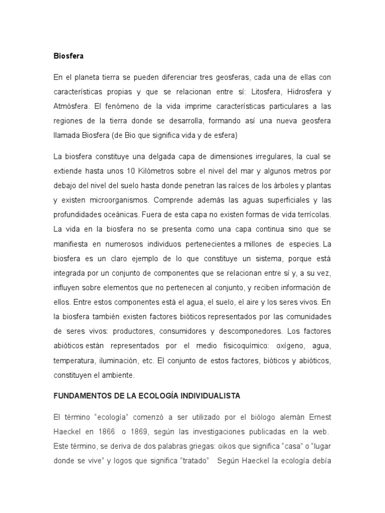 La biosfera es la capa de la tierra donde se da la vida, partiendo desde all, hemos