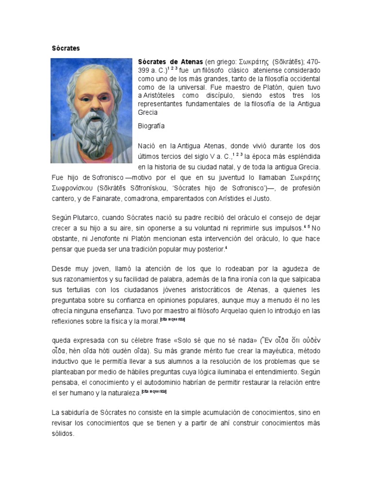 Scrates de Atenas (en griego: (Skrts); 470399 a. C.)1 2 3 fue un filsofo clsico ateniense considerado