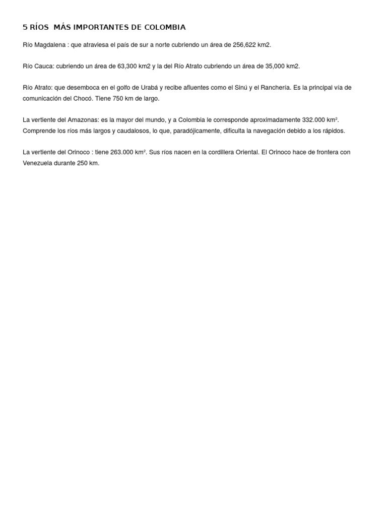 Ro Magdalena : que atraviesa el pas de sur a norte cubriendo un rea de 256,622 km2.