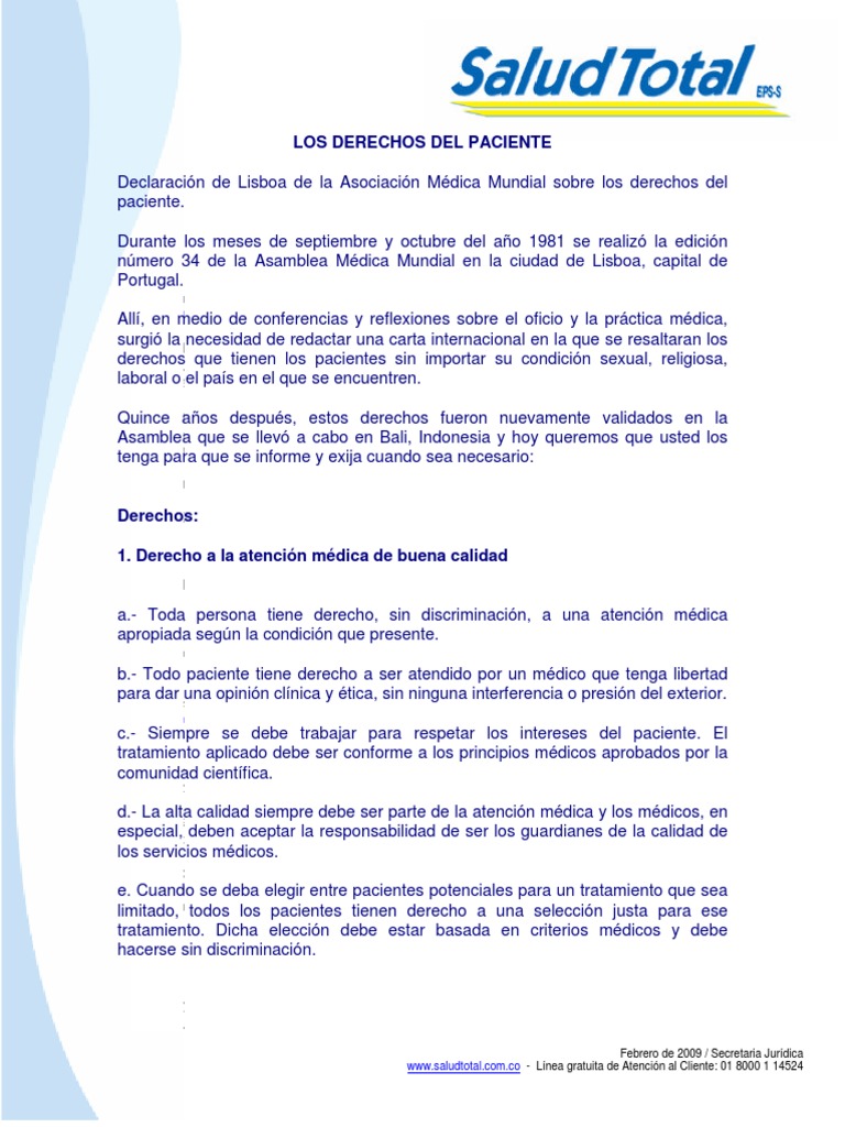 a. El paciente tiene derecho a elegir o cambiar libremente su mdico, hospital y