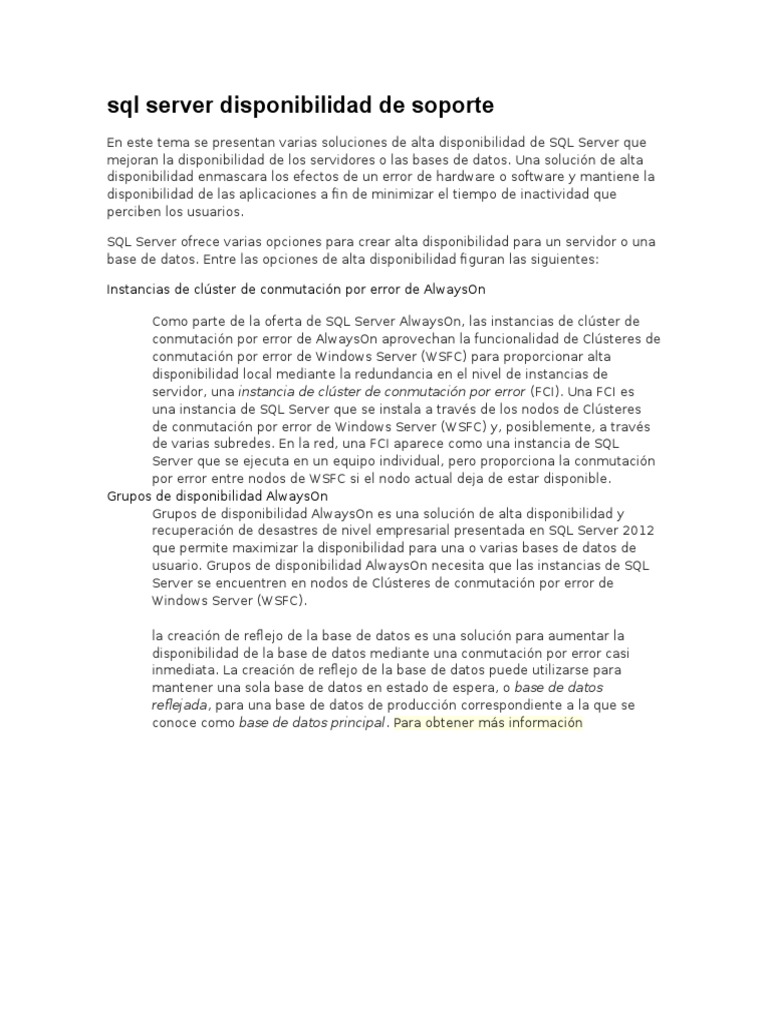 sql server disponibilidad de soporte